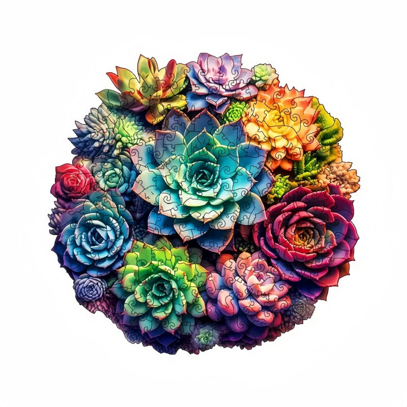 Succulent Wooden Jigsaw Puzzle-Birthday Creative Gift