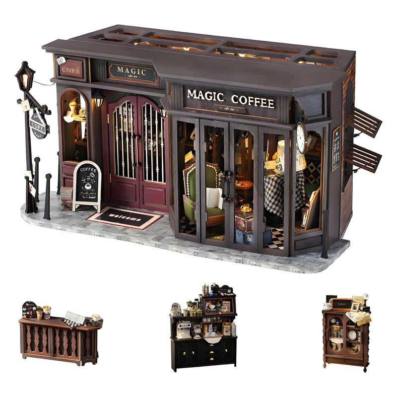 Mocha Coffee Shop - DIY Dollhouse Kit, 3D Wooden Puzzle