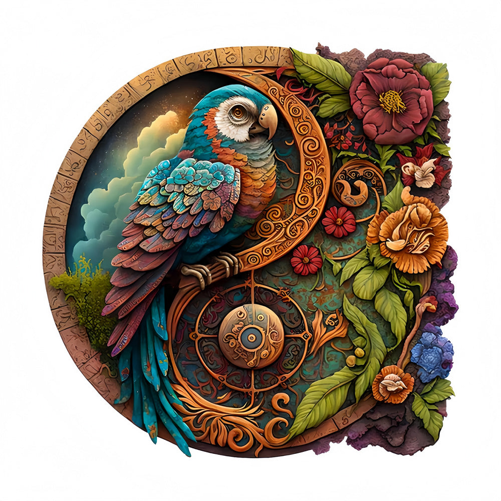 Parrot & Flower Yin Yang Wooden Jigsaw Puzzles