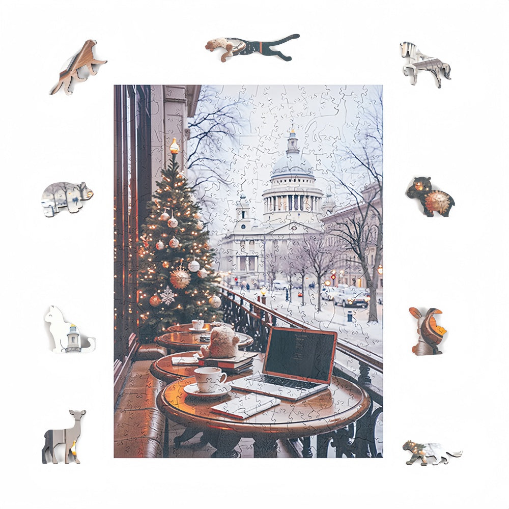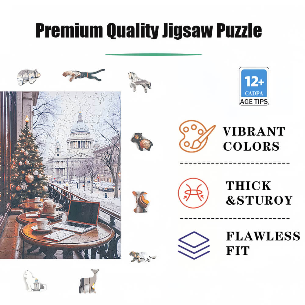 Christmas Snow Scene-Irregular Shape Wooden Jigsaw Puzzle
