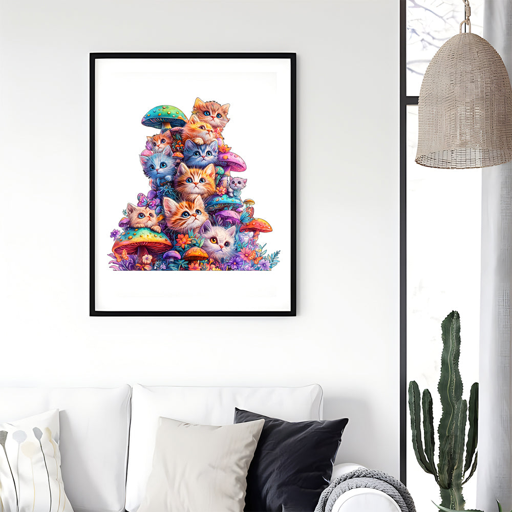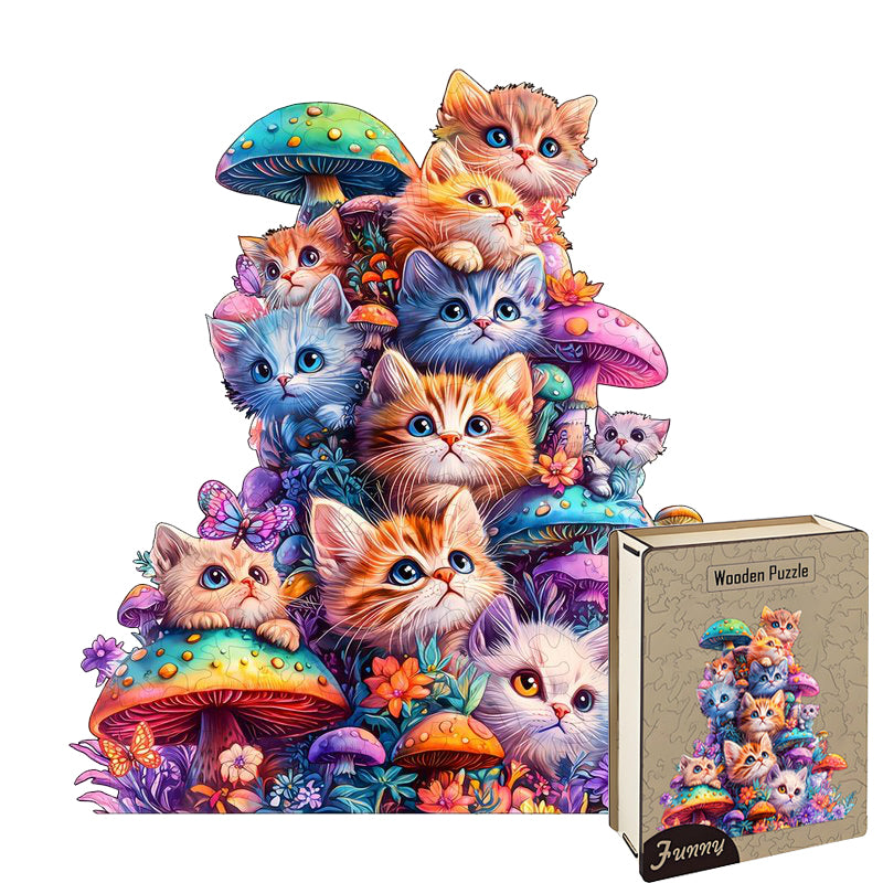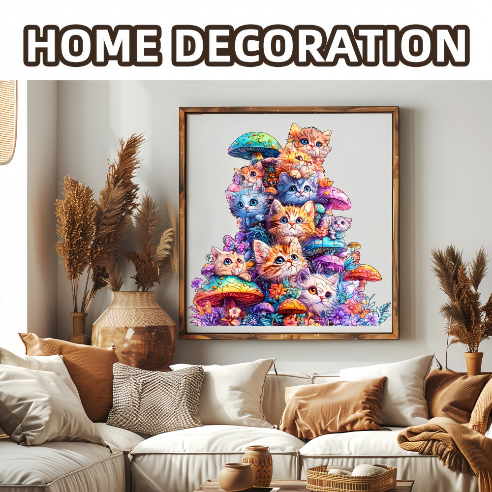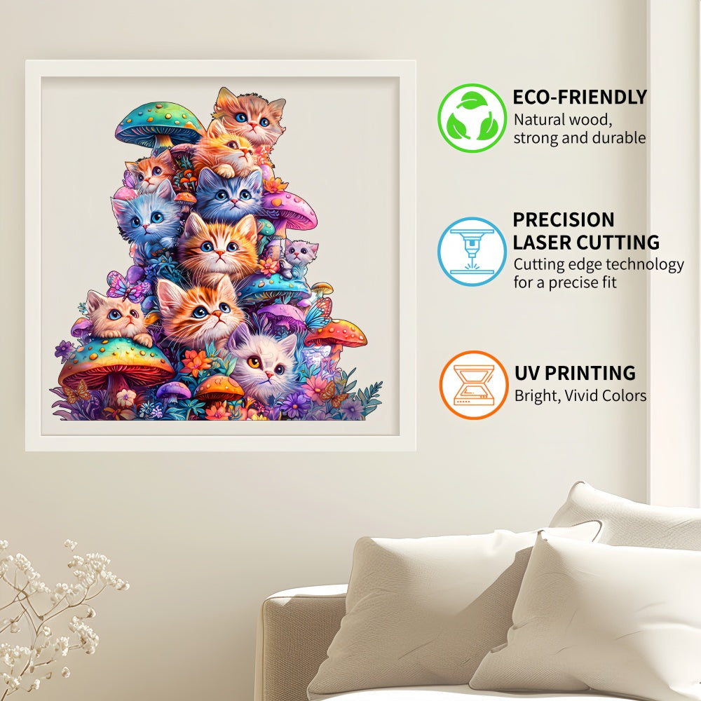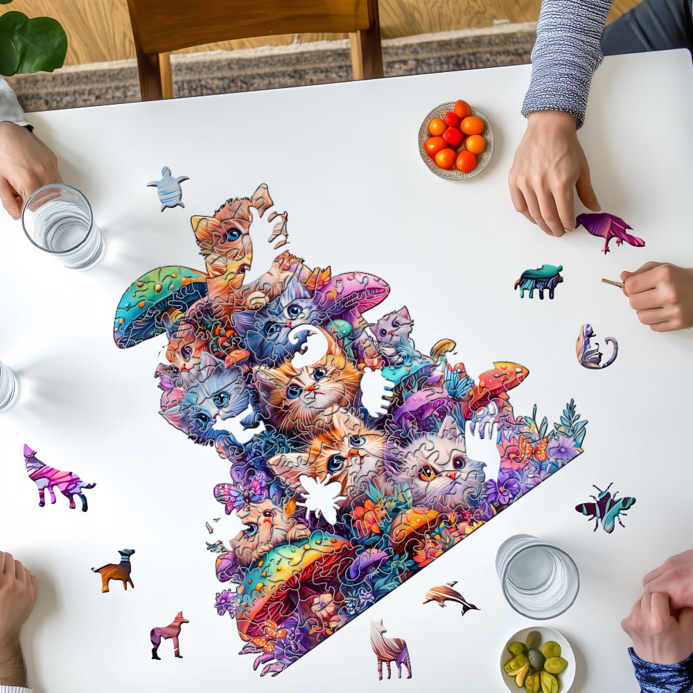 Colorful Cat Family Fun Wooden Jigsaw Puzzle