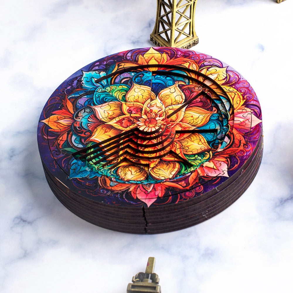 Colorful 7-Layer Mandala Wooden Jigsaw Puzzles-High Difficulty Level for Adult
