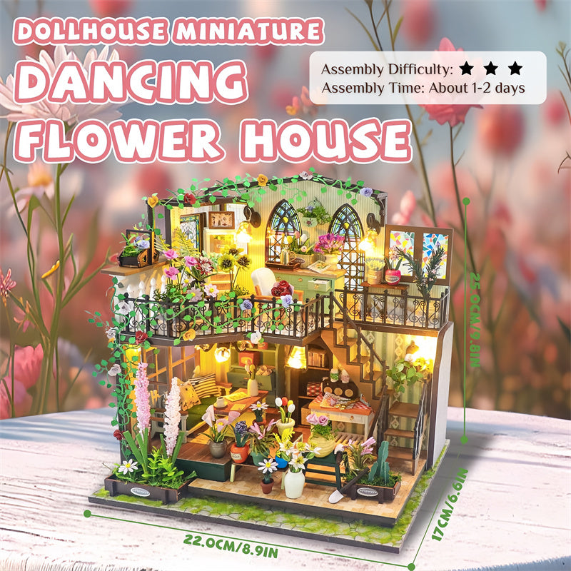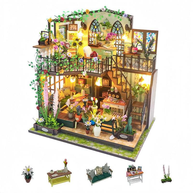 Darcy Flower House - DIY Dollhouse Kit, 3D Wooden Puzzle