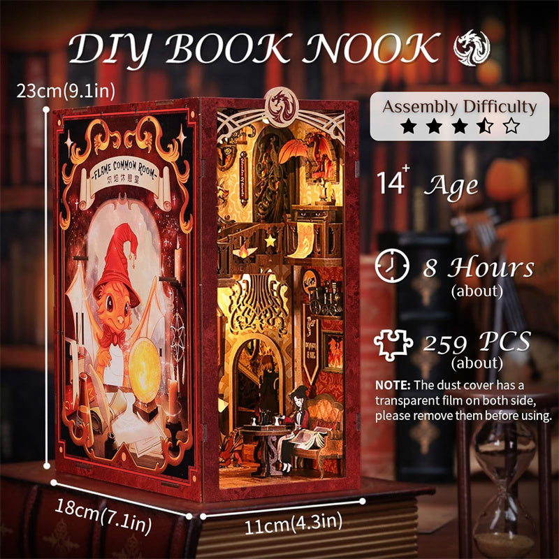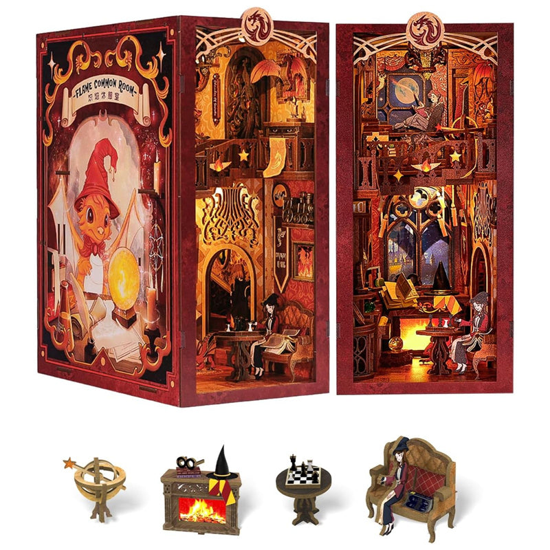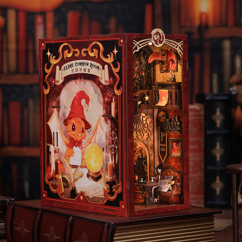 Flame Common Room - Book Nook Kit, DIY 3D Wooden Puzzle