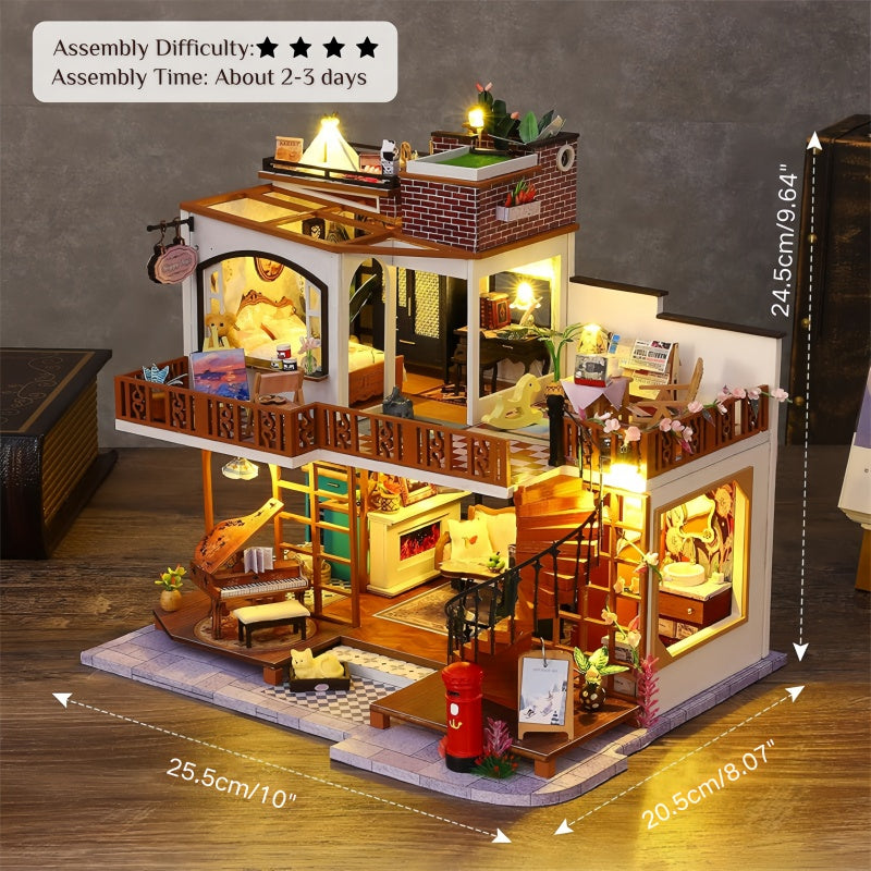 This amazing little house model kit is not only a beautiful gift for your family and friends to impress them, but also a charming decoration to brighten up your living room, bedroom, or study, creating a romantic and cozy little home atmosphere.