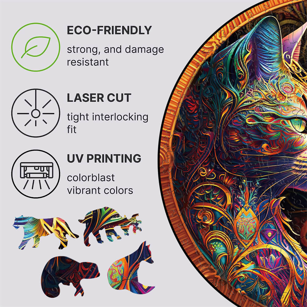 Mandala Cat Animal Wooden Jigsaw Puzzles Adults