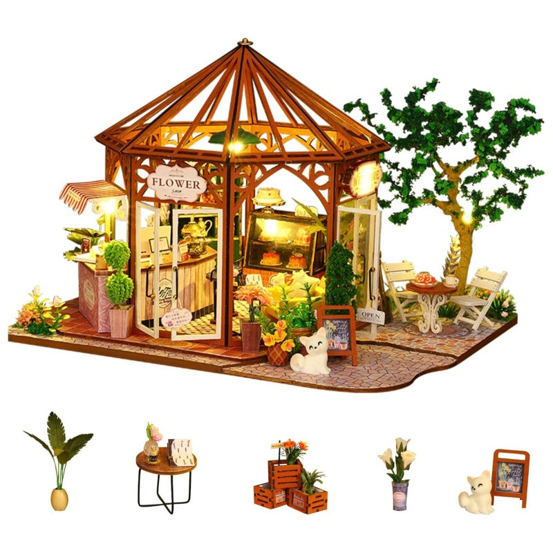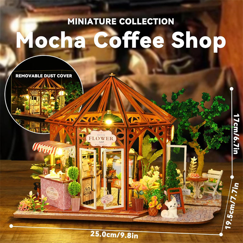 Mocha Coffee Shop - DIY Dollhouse Kit, 3D Wooden Puzzle