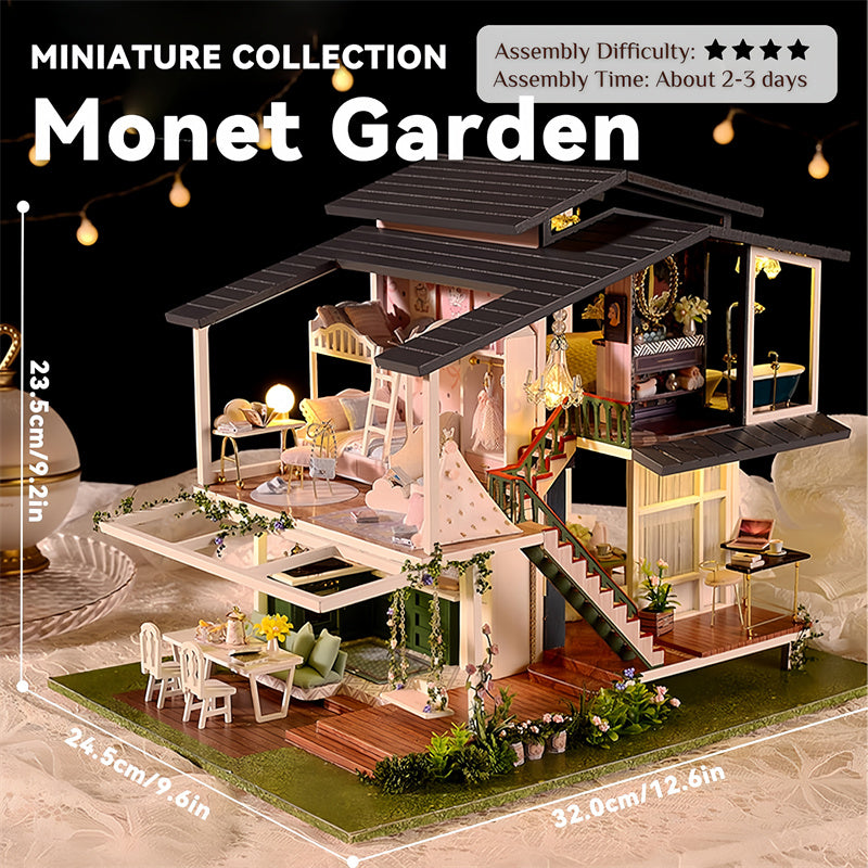 Monet's Garden - DIY Dollhouse Kit, 3D Wooden Puzzle