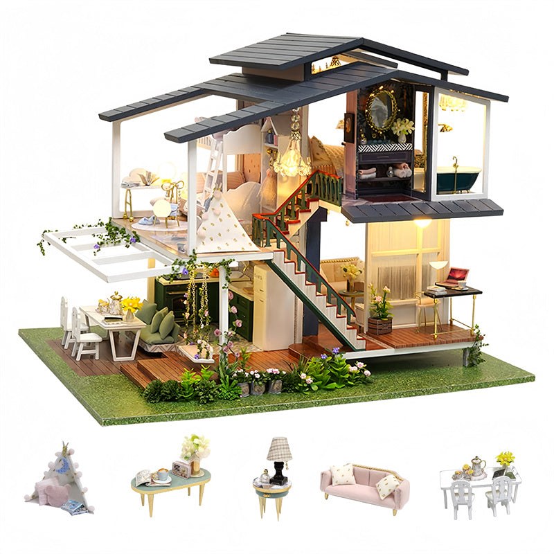 Our mini dollhouse kits are made of high-quality wood, fabric, plastic, metal, etc., which will not harm your child's health, safe and reliable.