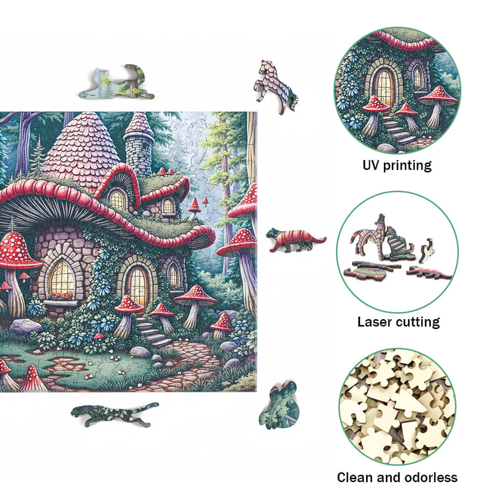 Mushroom House-Wooden Jigsaw Puzzle for Adults