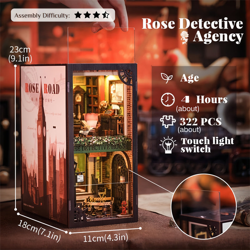 Rose Detective Agency - Book Nook Kit, DIY 3D Wooden Puzzle