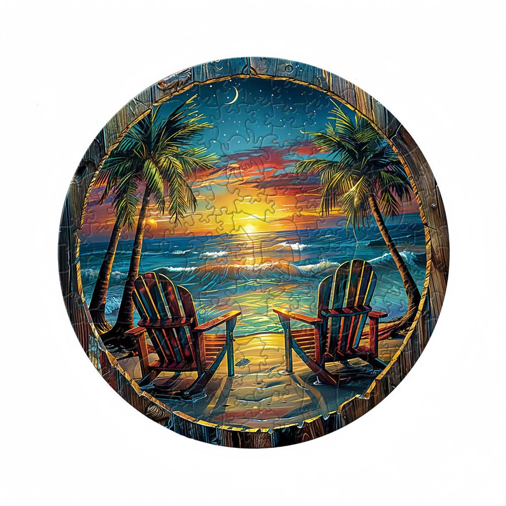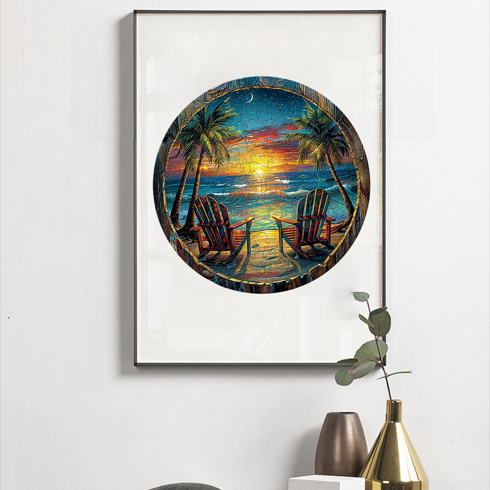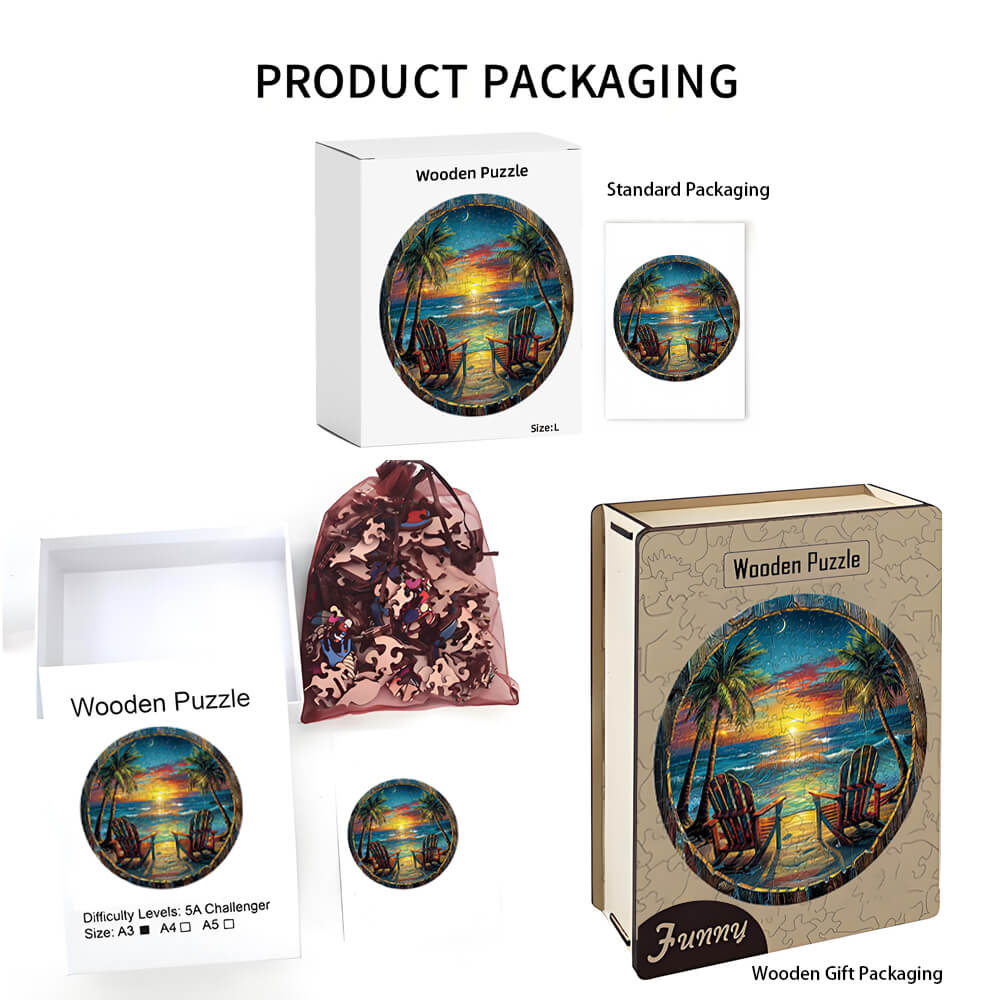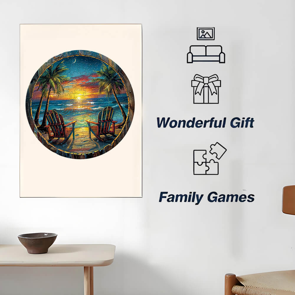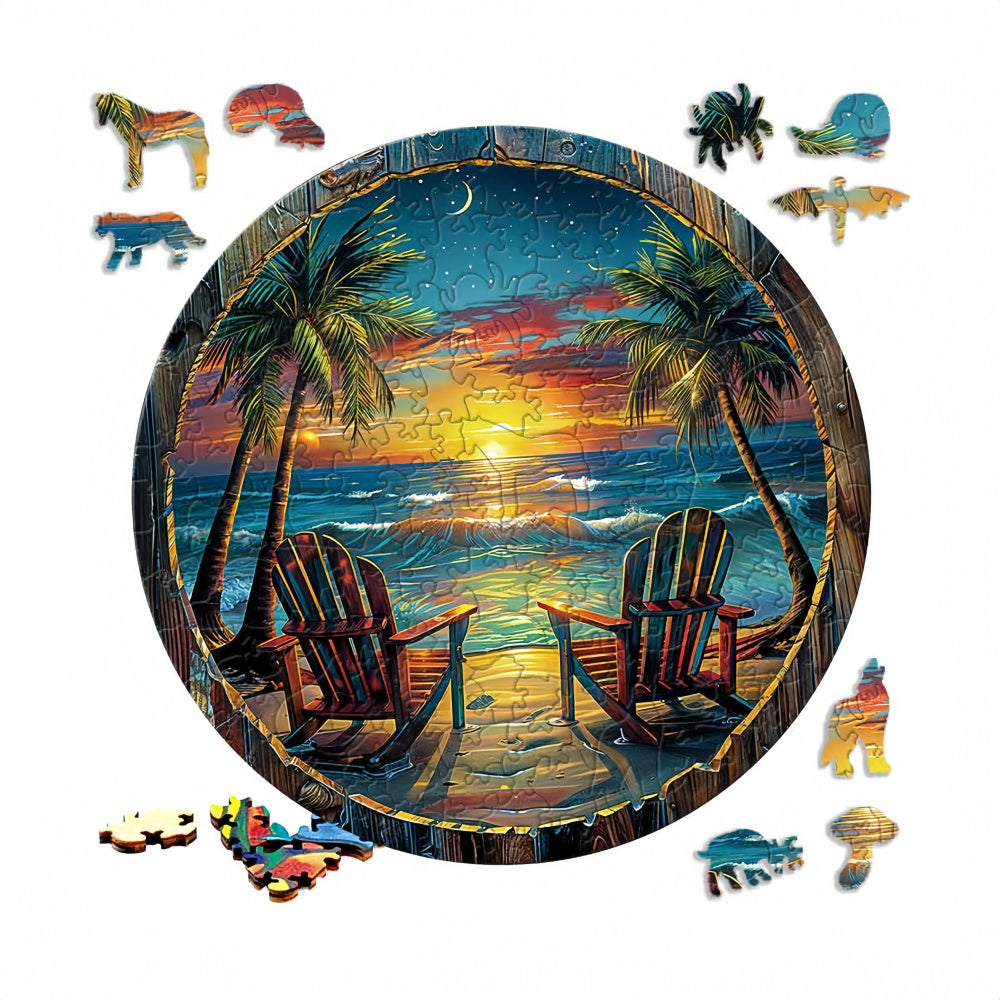 Seaside Sunset-Irregular Shape Wooden Jigsaw Puzzle
