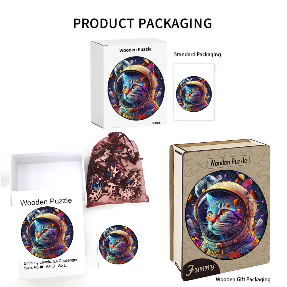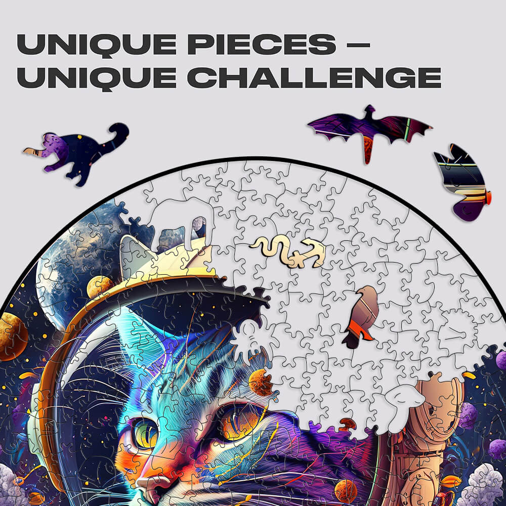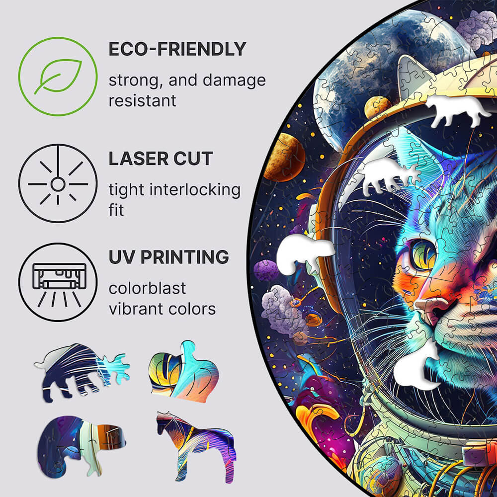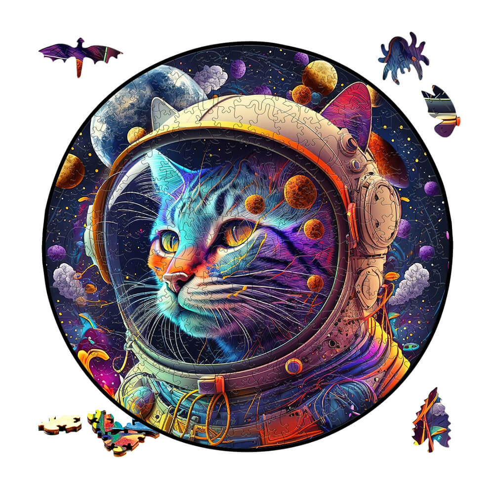 Space Cats Irregular Animal Wooden Jigsaw Puzzle