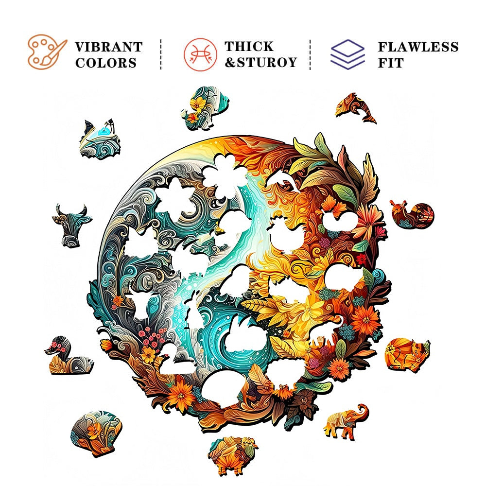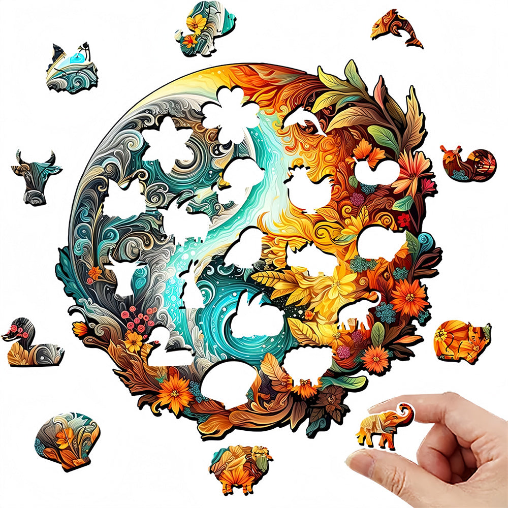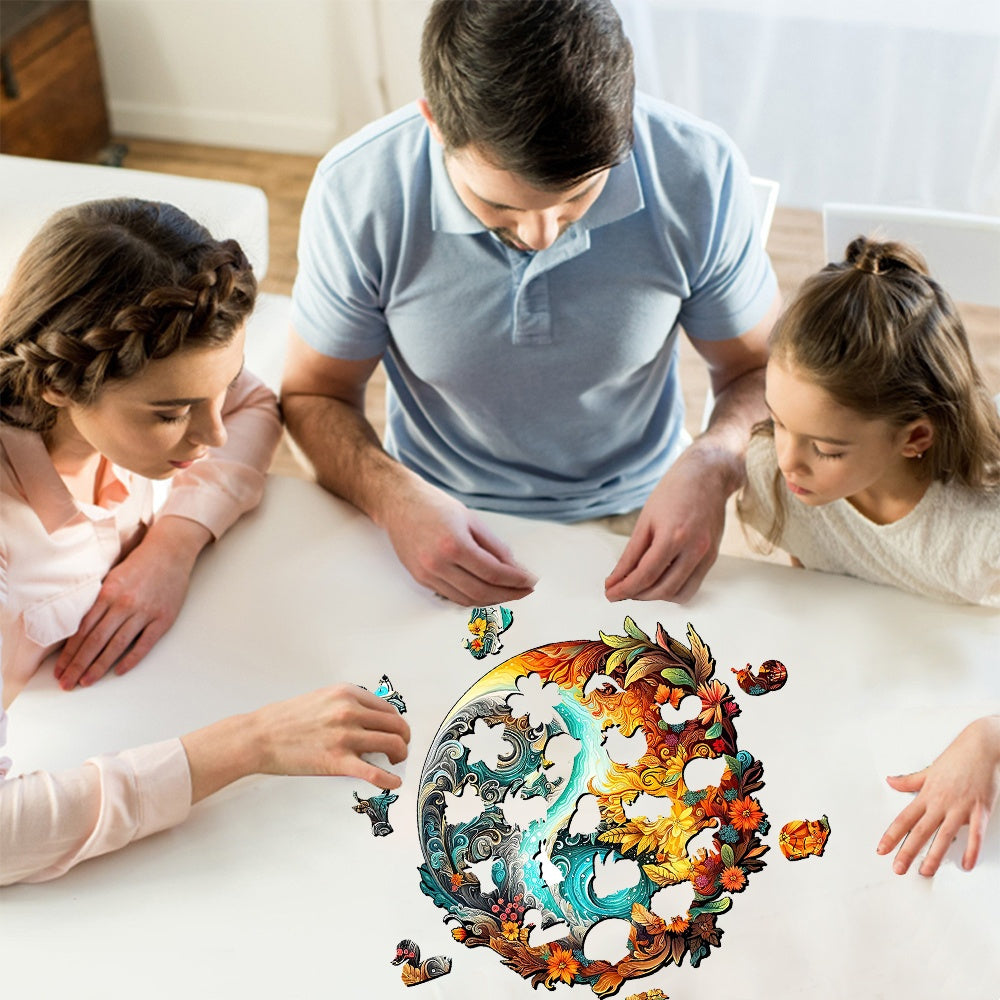 Yin Yang Style Floral Wooden Jigsaw Puzzles