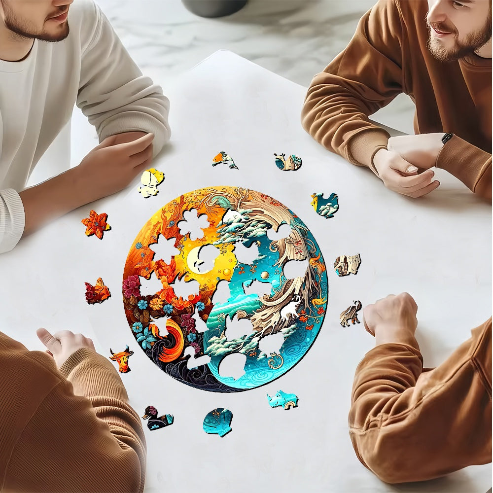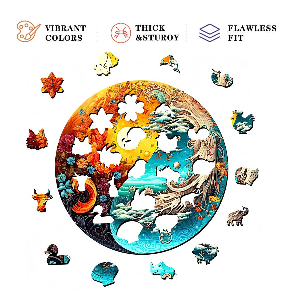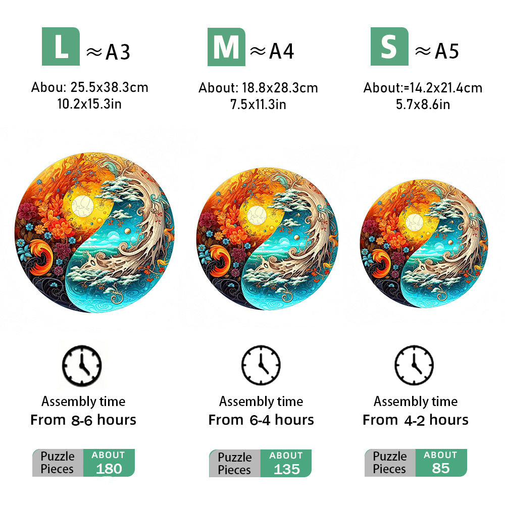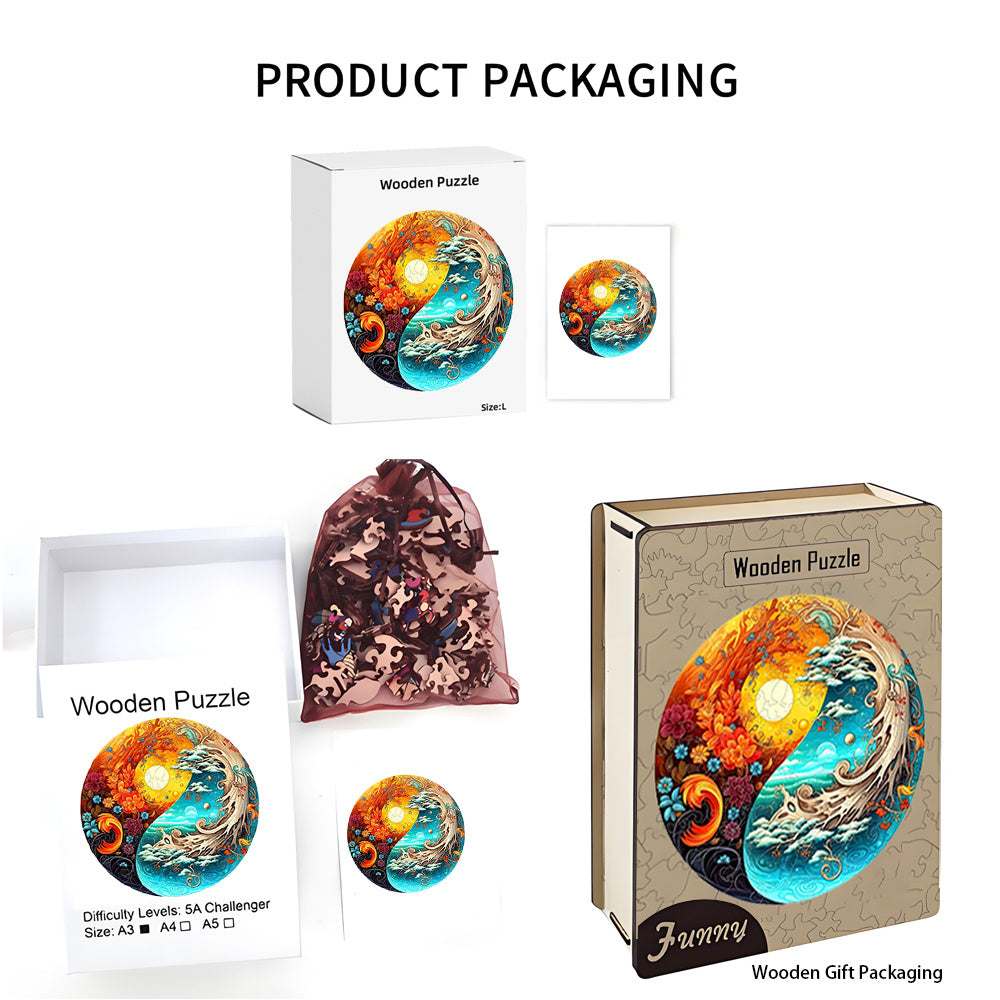 Yin Yang Style Wooden Jigsaw Puzzles Sunset/Sea