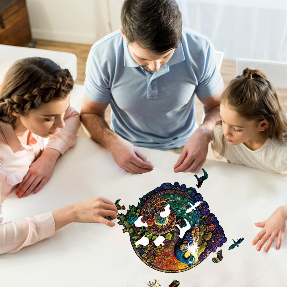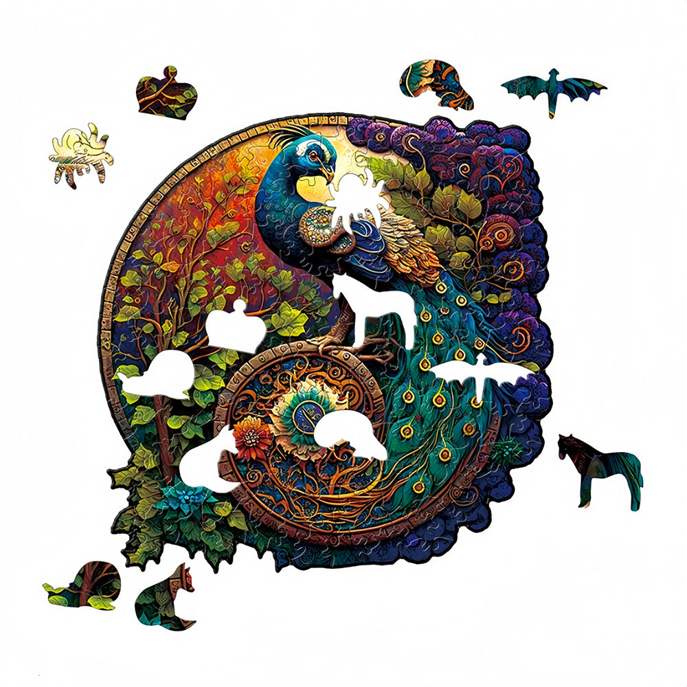 Yin Yang Peacock Leaf Jigsaw Puzzles for Adults